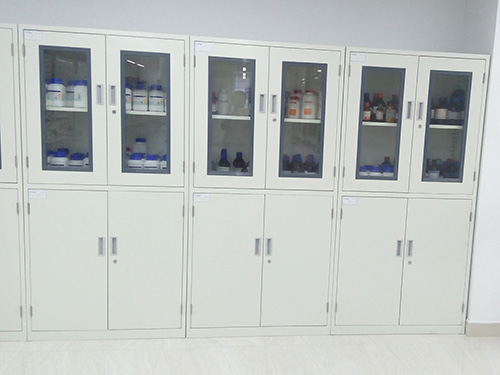 藥品柜是化學實驗室必不可少的櫥柜。主要放置固體化學試劑和標準溶液,這兩者必須分類放置,不可混放在一起。放置化學試劑應分類放置,便于查找。同時為了安全,藥品柜應設置玻璃門窗,柜體也應具有一定的承重能力和防腐蝕性。